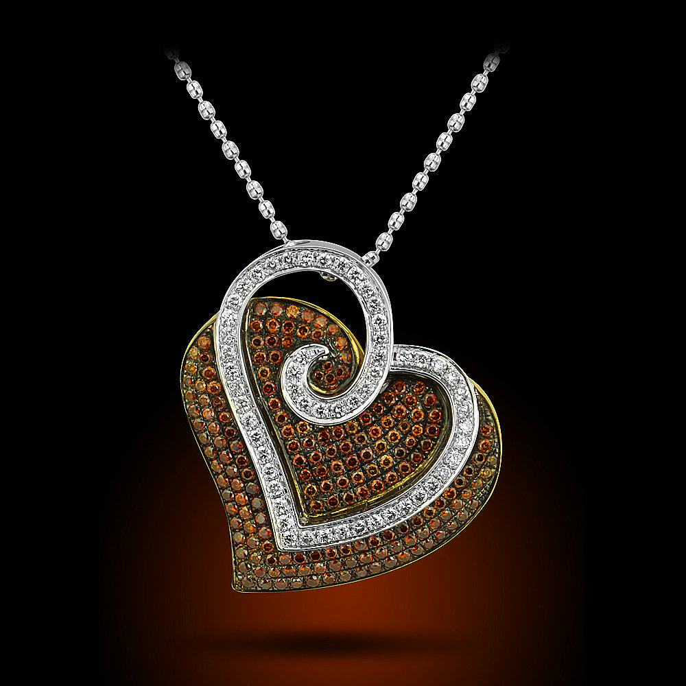 18K Two Tone White Diamond And Chocolate Diamond Heart Pendant 1.70Ct Diamonds